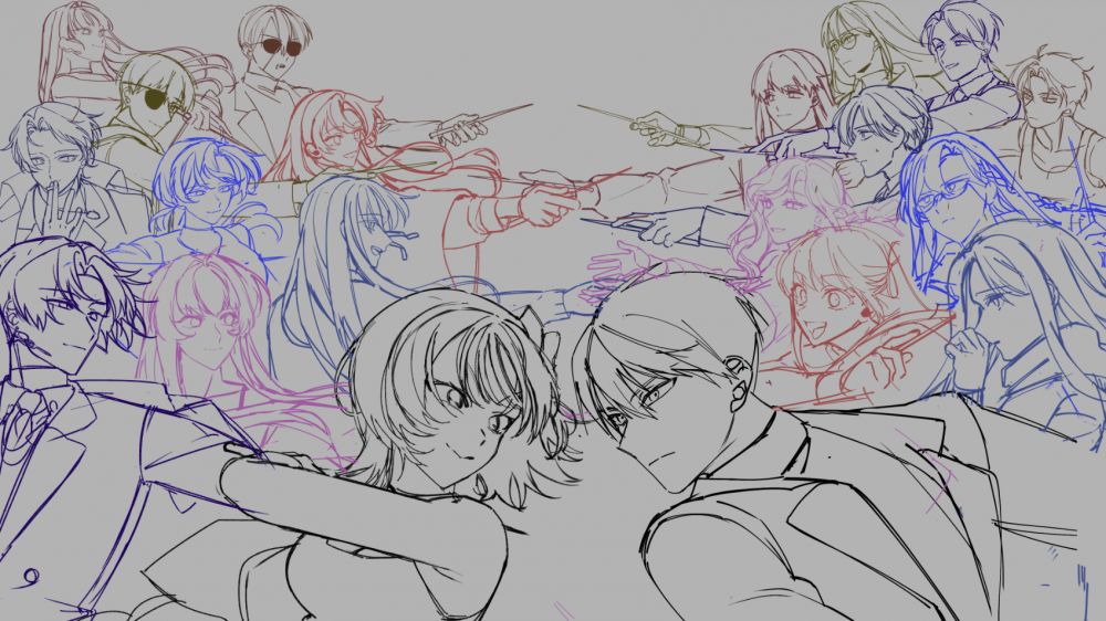 이런 단체짤... 무지무지 좋아하고 캔버스가 클수록 좋아하는데 (대인원을 한캔버스에 그리는 즐거움)